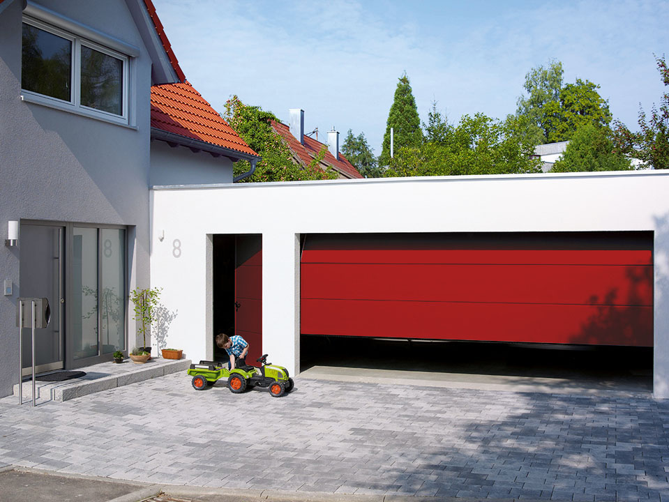 Os portões seccionados podem ser manuais ou automáticos com automatismo MOTORLINE.